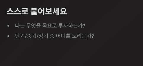 ✔ 단기/중기/장기 중 어디를 노릴 건가