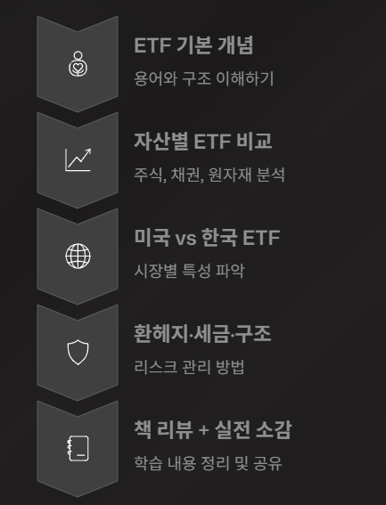 유튜브나 블로그 정보도 좋은데, ETF는 용어와 구조가 워낙 많아서 결국 책이 정리가 잘 되어 있다는 생각이 들었다.
