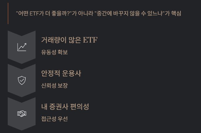 “어떤 ETF가 더 좋을까?”가 아니라 “중간에 바꾸지 않을 수 있느냐”입니다.