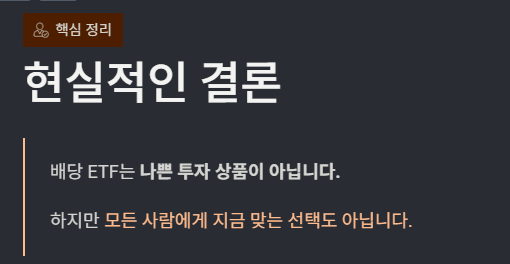즉, “배당 ETF는 지금이 아니라, 나중이다.”