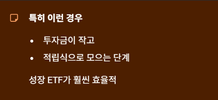 ✔ 투자 초기 → S&P500 같은 성장 ETF