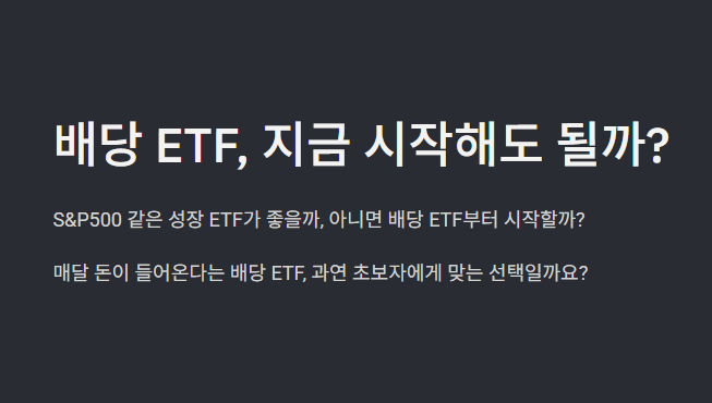 “S&P500 같은 성장 ETF가 좋을까, 아니면 배당 ETF부터 시작할까?”