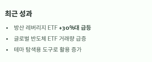 최근 증시에서는 ETF를 ‘테마 탐색용 투자 도구’로 활용하는 흐름이 뚜렷하다.