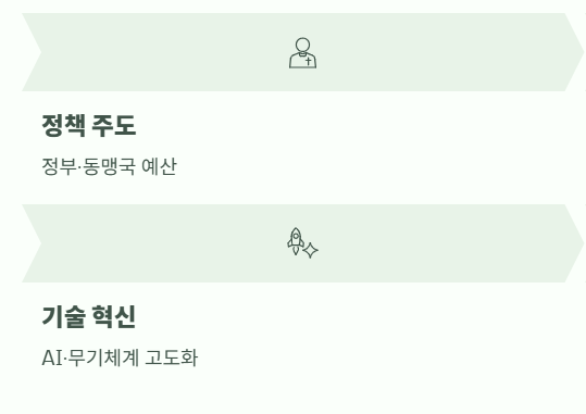 군비 경쟁은 미국·독일·러시아·중동 변수 때문에 국가 단위 예산이 비교적 길게 간다.