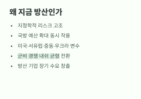 이런 구도는 방산 기업에 장기 수요를 만든다.