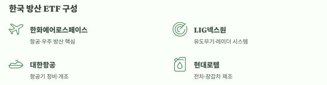 한국 방산 ETF는 한화에어로스페이스·LIG넥스원·대한항공·현대로템 등
