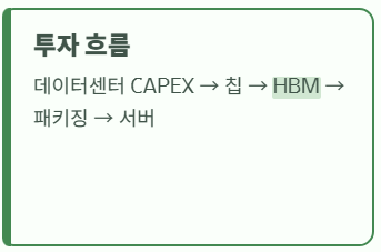 AI 투자 흐름이 데이터센터 CAPEX → 칩 → HBM → 패키징 → 서버로 이어지며 ETF에서 ‘HBM 단독 테마’가 분화된 것도 특징이다.