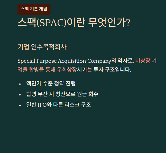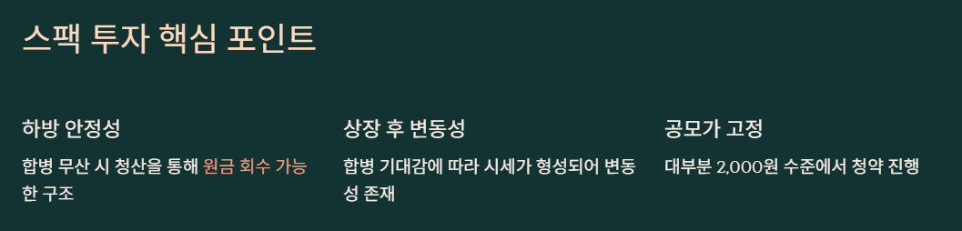 스팩(SPAC)은 일반 공모주와 달리 상장 이후 합병 대상을 찾는 구조이기 때문에, 단기 공모차익보다 향후 합병 기대감이 더 중요하다는 특징이 있습니다.