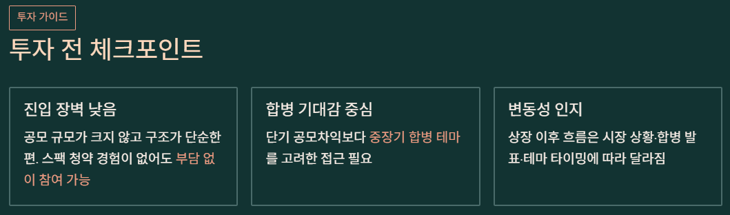 이번 글은 기본 청약 정보와 구조 정리 중심이며, 합병 대상·장외 시장·케이스 비교 등은 별도로 다룰 수 있습니다.