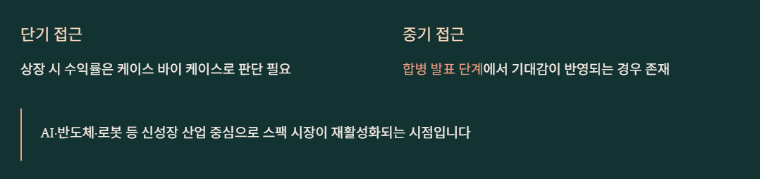 - 단기: 상장 시 수익률 기대는 케이스 바이 케이스