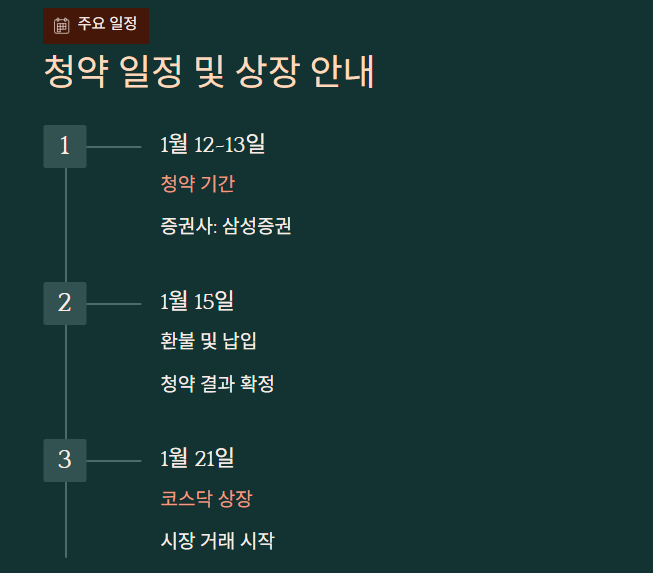 청약일은 1월 12~13일이며, 상장일은 1월 21일입니다.