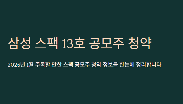 2026년 1월 삼성 스팩 13호 공모주 청약이 진행됩니다.