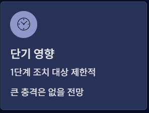 - 단기적 영향: 1단계 조치 대상이 제한적이어서 큰 충격은 없음