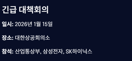 - 2026년 1월 15일, 산업통상부는 서울 대한상공회의소에서 삼성전자, SK하이닉스 등 업계와 긴급 회의를 진행했습니다.
