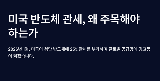 2026년 1월, 미국 정부가 일부 첨단 반도체에 25% 관세를 부과한다고 발표했습니다.