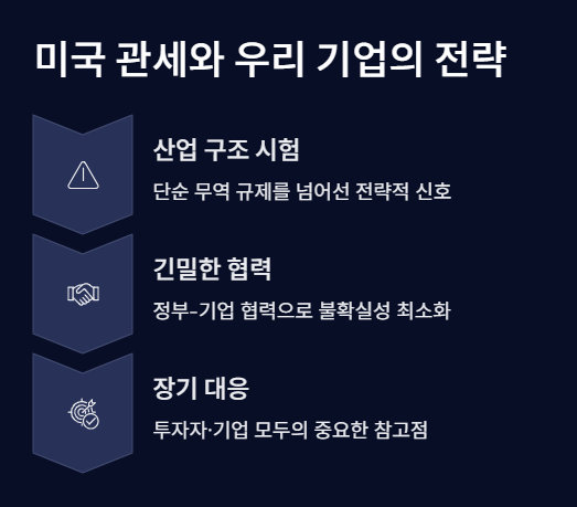 이번 관세 조치는 산업 경쟁력 강화와 공급망 재편이라는 미국의 전략적 목표가 반영된 조치입니다.