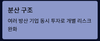 - ① 분산 구조: 특정 기업이 아닌 여러 방산 기업에 동시에 투자