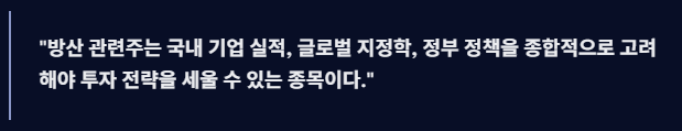 최근 방산 관련주는 단순 주식 종목 이상의 의미를 갖습니다.
