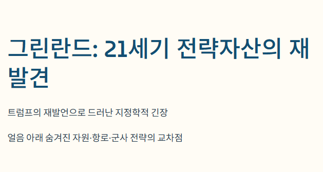 그린란드는 환경 이슈가 아니라 지정학·자원·항로·군사·공급망이 겹치는 ‘복합 투자 테마’다.