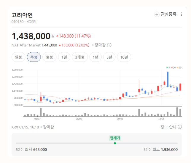 최근 시장에서 눈에 띄는 종목 중 하나가 고려아연이다.