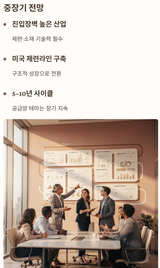 - 소재·제련·공급망 산업은 진입장벽 높음