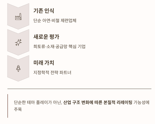 최근 시장은 “희토류·소재·공급망·지정학”으로 재평가하고 있는 중이다.