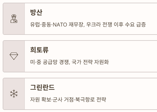방산/그린란드/희토류 테마와 연결