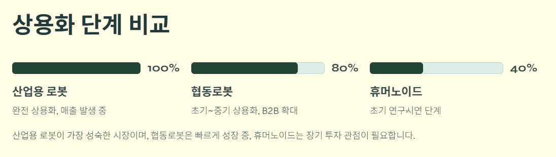 | 상용화 단계 | 상용화 완료, 매출 발생 | 초기~중기 상용화, B2B 중심 | 초기 연구·시연 단계 |