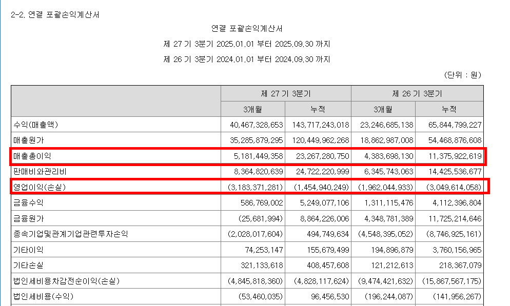 아직은 매출 현황에서 찾아보면 당기순이익은 손실입니다. 하지만 앞으로의 전망을 보고 투자를 하는 것이 적절하다고 생각이 듭니다.