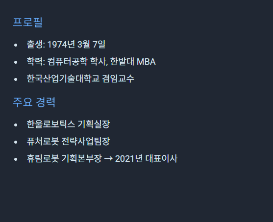 - 휴림로봇 기획본부장 → 2021년 대표이사