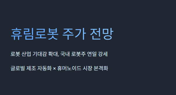 본 글은 로봇·AI 산업 흐름과 휴림로봇 관련 정보를 정리한 것으로, 특정 종목의 매수나 매도를 유도하지 않습니다. 투자 결정과 손익 책임은 투자자 본인에게 있음을 알려드립니다.