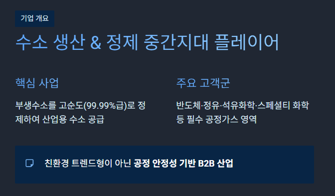 어떤 회사인가 — 수소 생산 & 정제 중간지대 플레이어