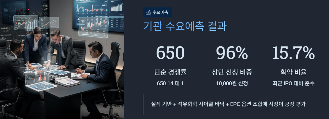 기관 수요예측 결과는 공모가 확정에 반영되었으며, 일반청약 경쟁률은 청약 마감 후 확인할 수 있습니다.