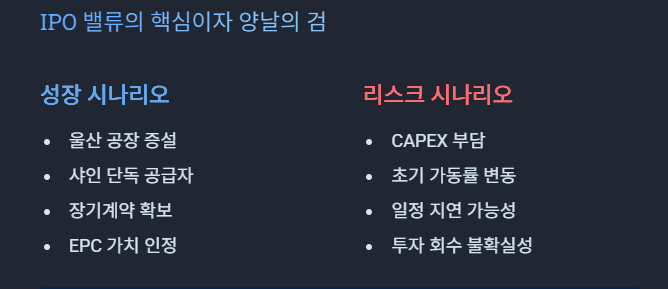 IPO 밸류 → 향후 실적 → 재상장 평가까지 좌우한다.