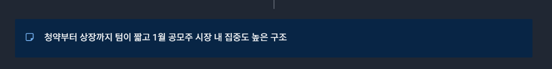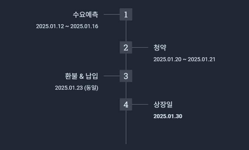 청약~상장까지 텀이 짧고 환불·납입일이 동일한 구조입니다. 1월 공모주 시장 내에서 상장 이벤트 집중도가 높은 편입니다.