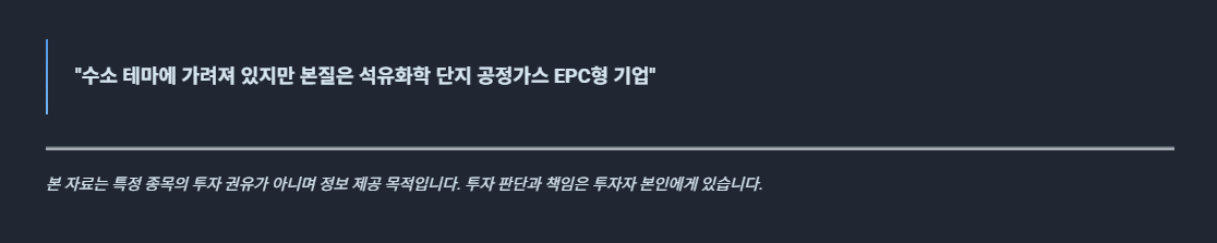 즉, “수소 EPC를 할 수 있는 운영형 기업” 포지션입니다.