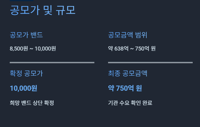 - 공모금액: 약 638억 ~ 750억