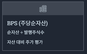 - BPS(주당순자산가치, Book Value Per Share): 기업이 가진 순자산을 발행 주식 수로 나눈 값입니다. BPS가 높으면 기업 자산 대비 주가가 저평가되지 않았는지 판단할 수 있습니다.