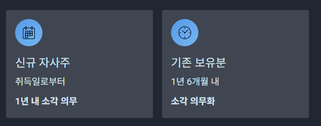- 기존 보유 자사주: 1년 6개월 내 소각