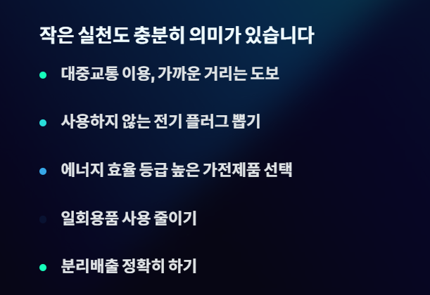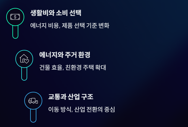 => 결국 탄소중립은 생활비, 소비 선택, 이동 방식까지 바꾸는 흐름입니다.