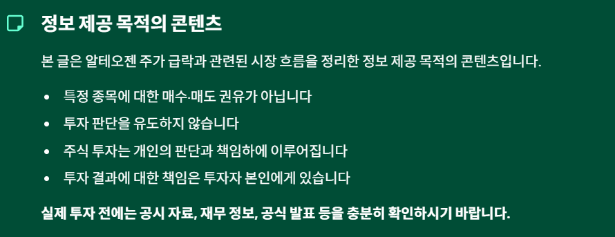 본 글은 알테오젠 주가 급락과 관련된 시장 흐름을 정리한 정보 제공 목적의 콘텐츠입니다.