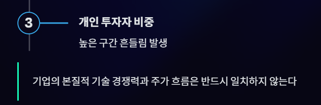 - 개인 투자자 비중이 높은 구간에서 흔들림 발생