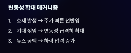 - 기대가 꺾이는 순간 변동성이 급격히 확대됨