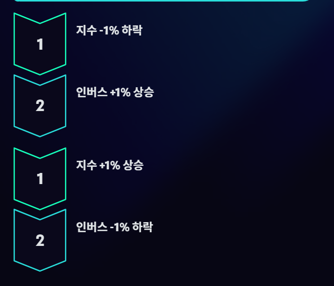 - 지수 -1% 하락 → 인버스 +1% 상승