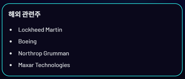 - Lockheed Martin, Boeing: 발사체·위성사업