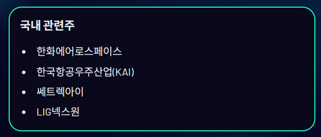 - 한화에어로스페이스, 한국항공우주산업(KAI), 쎄트렉아이