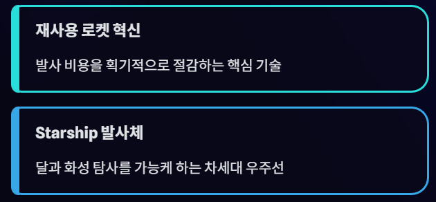 이 회사는 민간 주도의 우주 산업을 세계적으로 선도하며, 기존의 NASA 중심 우주 발사 체계를 뛰어넘는 혁신적 모델을 보여주고 있습니다.