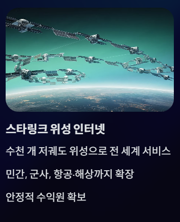 - 스타링크 연계: 위성 인터넷 사업으로 수익 안정화