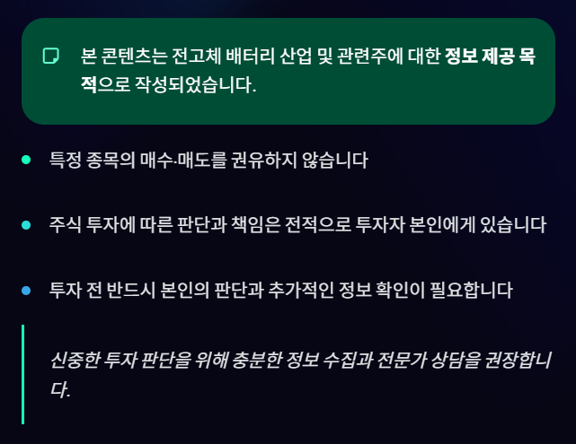 본 글은 전고체 배터리 산업 및 관련주에 대한 정보 제공 목적의 콘텐츠이며,