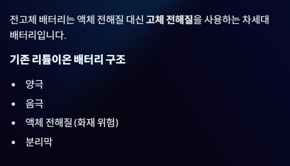 - 일본, 중국, 미국 기업들이 이미 전고체 연구를 가속화